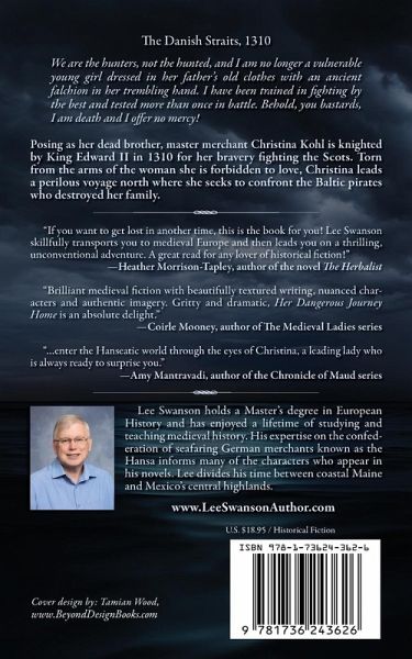 1310, Berwick-upon-Tweed, England - Edward II knights Frederick Kohl for his bravery fighting the Scots. But Sir Frederick is not the man the king believes him to be; instead, it is his sister, Christina, who assumes her dead brother's identity and receives his spurs. Still posing as Frederick, Christina escorts Lady Cecily, a young noblewoman joining Queen Isabella's court at Westminster Palace, to London. Unexpectedly, Christina and Cecily fall in love. Their joy is short-lived, as their future together is seemingly impossible. The wife of one of the wealthiest and most influential men in the city is Christina's bitter enemy. Katharine Volker, whose lascivious advances Christina rejects, goads her into voyaging from her London home to the Baltic waters of her birthplace. Christina journeys not to engage in trade, as one would expect of a master merchant. She sails for a far more deadly purpose--to exact revenge on the pirates who killed her father and brother. What will transpire in London during her absence and is there any hope for her lasting happiness with Cecily? Christina must employ all her courage and fighting skill, as well as a secret weapon, to survive her adventure quest through pirate infested waters.