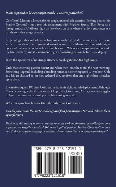 It was supposed to be a one night stand . . . no strings attached. Cole "Iron" Maxton is known for his tough, unbreakable exterior. Nothing phases this Marine Corporal -- not even his assignment with Marines Special Task Force at a foreign embassy. Until one night on leave back on base, when a random encounter at a bar shatters that tough exterior. Isis Jennings is shocked when the handsome, curly haired Marine comes to her rescue at the bar to shove some unwanted attention away. This Marine is strong with bright eyes, and the way he looks at her makes her melt. When she bumps into him outside the bar, sparks fly, and it leads to one night of scorching passion before Cole deploys. With the agreement of no strings attached, no obligations. One night only. Only that scorching passion doesn't end when they leave the motel the next morning. Something lingered, including a budding romance neither expected . . . yet both Cole and Isis are shocked at just how tethered they are from that one night when it catches up to them. Life makes a quick 180 after Cole returns from his eight month deployment. Although Cole's been taught the Marine code of Improvise, Overcome, Adapt, even he struggles to figure out how a relationship with Isis is going to work. Which is a problem, because Isis is the only thing Cole wants. Can they overcome this surprise change and find passion again? Or will it shove them apart forever? __________ If you crave heroic military men, passionate romance, and a lot of realistic Marine action, you'll love M.D. Dalrymple's Marine Corps romance, Her Desirable Defender! Start the Men in Uniform: Marines series today! __________ Don't miss this steamy military suspense romance with no cheating, no cliffhangers, and a guaranteed happily ever after! This book is full of passion, Marine Corps realism, and doesn't shy away from language or realistic references to military or dangerous behavior!