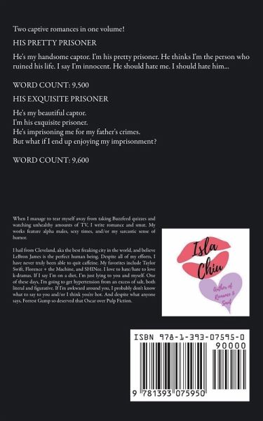 Two captive romances in one volume! HIS PRETTY PRISONER He's my handsome captor. I'm his pretty prisoner. He thinks I'm the person who ruined his life. I say I'm innocent. He should hate me. I should hate him... Excerpt: A few hours later, I wake up to Kevin saying, "Hello, sleeping beauty." Oh s**t, he's already back? I remember his words: "I'll be back around 5 PM. At that time, I expect to find you waiting for me on the bed without any clothes on." Gulping, I ask, "What time is it?" "Well after 5. And you're neither on the bed nor naked." His voice is calm, but I know he's not going to let my disobedience slide, even if it was unintentional. I shiver. "Are you going to punish me?" He pulls at my camisole. "What do you think?" he asks in a deceptively gentle voice. WORD COUNT: 9,500 HIS EXQUISITE PRISONER He's my beautiful captor. I'm his exquisite prisoner. He's imprisoning me for my father's crimes. But what if I end up enjoying my imprisonment? WORD COUNT: 9,600 EXCERPT: "You are the most exquisite thing that I've ever seen," Hayden says. "But you intrigued me in other ways." I laugh humorlessly. "Well, as long as you kidnapped me for non-shallow reasons..." "If your father becomes distressed about your disappearance-" "He won't." Ignoring me, he finishes, "That's just a sweet bonus." "God, you're a psycho." And to think I sort of enjoyed his company last night. He sits on the bed, then puts me on his lap. My body burns as he pulls off the sheets and he stares at my bare body. "Are you going to force yourself on me?" I ask. I wish I was a cool action movie heroine who could fashion a deadly weapon out of something in this room. But I'm only me, a weak, stupid girl who has no hope of fighting him off. "I'm going to have you enjoy yourself," he breathes into my ear.