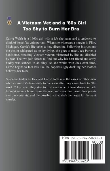 Carrie Walsh is a 1960s girl with a job she hates and a tendency to think of herself as unimportant. When she witnesses a murder in Flint, Michigan, Carrie's life takes a new direction. Following the instructions the victim whispered as he lay dying, she goes to meet Jack Porter, a handsome, brooding Vietnam veteran mistreated by life and disabled by war. The two join forces to find out why his best friend and army buddy was stabbed in an alley. As she works with Jack, Carrie begins to feel less like the hopeless ugly duckling her mother believes her to be. Suspense builds as Jack and Carrie look into the cases of other men who survived Vietnam only to die soon after they came back to "the world." Just when they start to trust each other, Carrie discovers Jack brought secrets home from the war, secrets that create disappointment, uncertainty, and the very real possibility she's the target for the next murder.