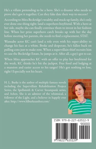 He's a villain pretending to be a hero. She's a disaster who needs to prove she's got it together. Can they fake date their way to success? According to Mira Beckridge's wealthy and stuck-up family, she's only ever done one thing right: land a superhero boyfriend. With a hero at her side, maybe she can finally convince them to invest in her fashion line. When her prize superhero catch breaks up with her the day before meeting her parents, she needs to find a replacement, STAT. Wannabe actor KC can't land a role even with his super-ability to change his face at a whim. Broke and desperate, he's fallen back on pulling cons just to make rent. When a supervillain thief recruits him to case the Beckridge Estate, he jumps at it. After all, a guy's got to eat. When Mira approaches KC with an offer to play her boyfriend for the week, KC thinks he's hit the jackpot. Free food and lodging at a mansion and easier access to his target? He's got nothing to lose, right? Especially not his heart.