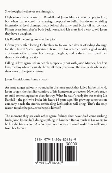 She thought she'd never see him again. High school sweethearts Liz Randall and Jason Merrick were deeply in love, but when Liz rejected his marriage proposal to fulfill her dream of riding international level dressage, Jason joined the army and broke off all contact. Fifteen years later, they're both back home, and Liz must find a way to tell Jason they have a daughter. Liz Randall is coming home a champion. Fifteen years after leaving Columbus to follow her dream of riding dressage for the United States Equestrian Team, Liz has returned with a gold medal, a determination to raise her teenage daughter, and a dream to expand her therapeutic riding practice. Falling in love again isn't in her plan, especially not with Jason Merrick, her first love, the boy whose heart she broke all those years ago. The man with whom she shares more than just a history. Jason Merrick came home a hero. An army ranger seriously wounded in the same attack that killed his best friend, Jason sought the familiar comfort of his hometown to recover. Now he's ready to build something rather than destroy. What he wasn't ready for was seeing Liz Randall - the girl who broke his heart 15 years ago. His growing construction company needs the money remodeling Liz's stables will bring. That's the only reason to take the job...or so he tells himself. The moment they see each other again, feelings that never died come rushing back. Jason knows he'll doing anything to have her. But as much as Liz wants to be his, she has a secret. A secret that, once revealed, could make him walk away from her forever.