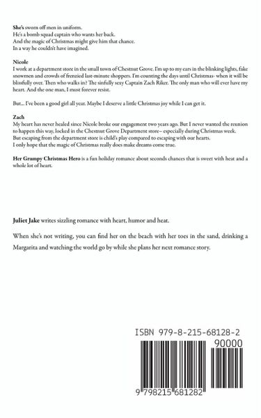 She's sworn off men in uniform. He's a bomb squad captain who wants her back. And the magic of Christmas might give him that chance. In a way he couldn't have imagined. Nicole I work at a department store in the small town of Chestnut Grove. I'm up to my ears in the blinking lights, fake snowmen and crowds of frenzied last-minute shoppers. I'm counting the days until Christmas- when it will be blissfully over. Then who walks in? The sinfully sexy Captain Zach Riker. The only man who will ever have my heart. And the one man, I must forever resist. But... I've been a good girl all year. Maybe I deserve a little Christmas joy while I can get it. Zach My heart has never healed since Nicole broke our engagement two years ago. But I never wanted the reunion to happen this way, locked in the Chestnut Grove Department store– especially during Christmas week. But escaping from the department store is child's play compared to escaping with our hearts. I only hope that the magic of Christmas really does make dreams come true. Her Grumpy Christmas Hero is a fun holiday romance about seconds chances that is sweet with heat and a whole lot of heart. No cliffhangers or cheating, just a hilarious, sizzling romance with a delicious happily ever after.