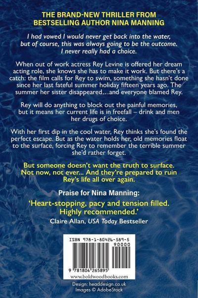 The BRAND NEW summer thriller from bestselling author Nina Manning I had vowed I would never get back into the water, but of course, this was always going to be the outcome. I never really had a choice. When out of work actress Rey Levine is offered her dream acting role, she knows she has to make it work. But there's a catch: the film calls for Rey to swim, something she hasn't done since her last fateful summer holiday fifteen years ago. The summer her sister disappeared...and everyone blamed Rey. Rey will do anything to block out the painful memories, but it means her current life is in freefall - drink and men her drugs of choice. With her first dip in the cool water, Rey thinks she's found the perfect escape. But as the water holds her, old memories float to the surface, forcing Rey to remember the terrible summer she'd rather forget. But someone doesn't want the truth to surface. Not now, not ever... And they're prepared to ruin Rey's life all over again. Perfect for fans of Freida McFadden, Valerie Keogh and Louise Jensen. Praise for Nina Manning 'Addictive... and beautifully written...I loved it.' Number One Bestselling author, Valerie Keogh. 'Heart-stopping, pacy and tension filled. Highly recommended.' Claire Allan, USA Today Bestseller 'Compelling and claustrophobic, Nina is an exciting new voice and definitely one to watch' Phoebe Morgan 'An addictive and compelling summer read. Manning keeps you hooked throughout and guessing until the end. The perfect book to take on holiday.' Natasha Boydell 'Chilling and creepy. An atmospheric and addictive debut.' Diane Jeffrey 'Totally addictive. I couldn't put it down!' Darren O'Sullivan 'A claustrophobic, nail-biting thriller that draws you in and doesn't let go.' Naomi Joy 'Clever, emotionally draining and totally gripping. I absolutely loved this book!' D E White