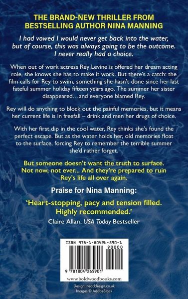 The BRAND NEW summer thriller from bestselling author Nina Manning I had vowed I would never get back into the water, but of course, this was always going to be the outcome. I never really had a choice. When out of work actress Rey Levine is offered her dream acting role, she knows she has to make it work. But there's a catch: the film calls for Rey to swim, something she hasn't done since her last fateful summer holiday fifteen years ago. The summer her sister disappeared...and everyone blamed Rey. Rey will do anything to block out the painful memories, but it means her current life is in freefall - drink and men her drugs of choice. With her first dip in the cool water, Rey thinks she's found the perfect escape. But as the water holds her, old memories float to the surface, forcing Rey to remember the terrible summer she'd rather forget. But someone doesn't want the truth to surface. Not now, not ever... And they're prepared to ruin Rey's life all over again. Perfect for fans of Freida McFadden, Valerie Keogh and Louise Jensen. Praise for Nina Manning 'Addictive... and beautifully written...I loved it.' Number One Bestselling author, Valerie Keogh. 'Heart-stopping, pacy and tension filled. Highly recommended.' Claire Allan, USA Today Bestseller 'Compelling and claustrophobic, Nina is an exciting new voice and definitely one to watch' Phoebe Morgan 'An addictive and compelling summer read. Manning keeps you hooked throughout and guessing until the end. The perfect book to take on holiday.' Natasha Boydell 'Chilling and creepy. An atmospheric and addictive debut.' Diane Jeffrey 'Totally addictive. I couldn't put it down!' Darren O'Sullivan 'A claustrophobic, nail-biting thriller that draws you in and doesn't let go.' Naomi Joy 'Clever, emotionally draining and totally gripping. I absolutely loved this book!' D E White