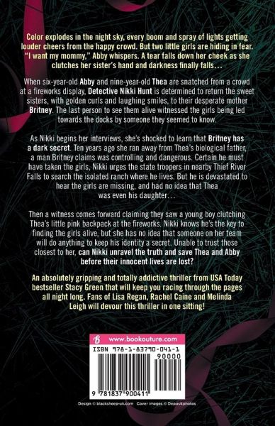 Color explodes in the night sky, every boom and spray of lights getting louder cheers from the happy crowd. But two little girls are hiding in fear. "I want my mommy," Abby whispers. A tear falls down her cheek as she clutches her sister's hand and darkness finally falls... When six-year-old Abby and nine-year-old Thea are snatched from a crowd at a fireworks display, Detective Nikki Hunt is determined to return the sweet sisters, with golden curls and laughing smiles, to their desperate mother Britney. The last person to see them alive witnessed the girls being led towards the docks by someone they seemed to know. As Nikki begins her interviews, she's shocked to learn that Britney has a dark secret. Ten years ago she ran away from Thea's biological father, a man Britney claims was controlling and dangerous. Certain he must have taken the girls, Nikki urges the state troopers in nearby Thief River Falls to search the isolated ranch where he lives. But he is devastated to hear the girls are missing, and had no idea that Thea was even his daughter... Then a witness comes forward claiming they saw a young boy clutching Thea's little pink backpack at the fireworks. Nikki knows he's the key to finding the girls alive, but she has no idea that someone on her team will do anything to keep his identity a secret. Unable to trust those closest to her, can Nikki unravel the truth and save Thea and Abby before their innocent lives are lost? An absolutely gripping and totally addictive thriller from USA Today bestseller Stacy Green that will keep you racing through the pages all night long. Fans of Lisa Regan, Rachel Caine and Melinda Leigh will devour this thriller in one sitting! What readers are saying about the Nikki Hunt series: "One sensational read! Wow, this one just completely blew me away. If you're looking for a brand new series to sink your teeth into, then look no further. A must-read!" Once Upon A Time Book Blog, ¿¿¿¿¿ "Wow!!... Absolutely unputdownable... Sucked me straight in... Absolutely addictive and I read it in one sitting... Kept me on the edge of my seat, biting my nails with my heart absolutely pounding throughout... and OMG I WAS NOT expecting THAT BOMBSHELL!!!" Bookworm86, ¿¿¿¿¿