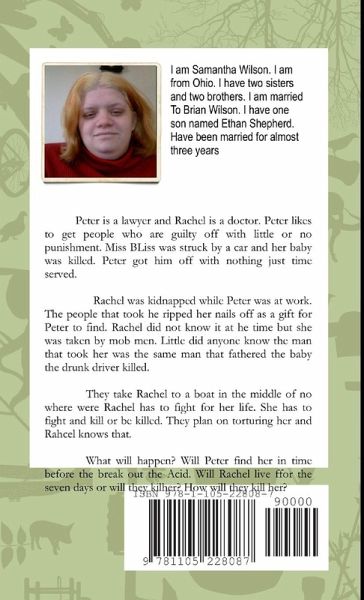 This book is a hard to put down book. I have had many people read it and they could NOT put it down until it was done. There is something for everyone in Her Lovers revenge from killing to torture to baby being born and even a rescue. So don't miss out hear what happens to Peter and Rachel in this mind blowing book!