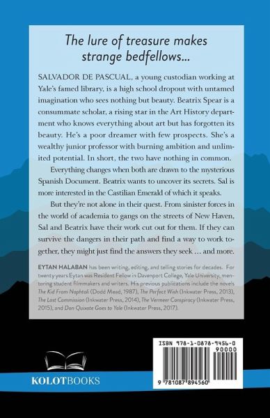The lure of treasure makes strange bedfellows... Salvador de Pascual, a young custodian working at Yale's famed library, is a high school dropout with untamed imagination who sees nothing but beauty. Beatrix Spear is a consummate scholar, a rising star in the Art History department who knows everything about art but has forgotten its beauty. He's a poor dreamer with few prospects. She's a wealthy junior professor with burning ambition and unlimited potential. In short, the two have nothing in common. Everything changes when both are drawn to the mysterious Spanish Document. Beatrix wants to uncover its secrets. Sal is more interested in the Castilian Emerald of which it speaks. But they're not alone in their quest. From sinister forces in the world of academia to gangs on the streets of New Haven, Sal and Beatrix have their work cut out for them. If they can survive the dangers in their path and find a way to work together, they might just find the answers they seek ... and more.