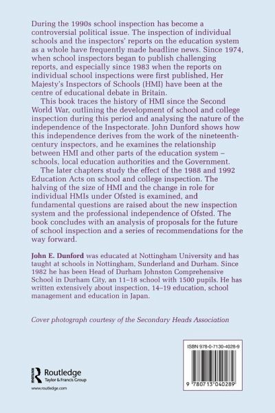 The Journal of the Secondary Heads Association - "John dunford"s extremly topical book manages to combine the academic rigour of a doctrate thesis, which is where it originated, with the wisdom and insights of an outstanding headteacher practitioner...John"s book is a tour de force. It is strongly recommended." Institute of Education - "..excellent.." History of Education Society Bulletin- " Her Majesty"s Inspectorate of Schools is...a much needed volume...it is accessible, well structured and presented...It is important not only for students of educational history but of interest to anyone who has recent experience of school inspections" Journal of Education Policy- " an excellent book" Headlines "At a time when we ought to be debating the best mode of school inspection in this country, it is useful to have a book which reminds us of the benefits-and the shortcoming-of HMI before OFSTED.
