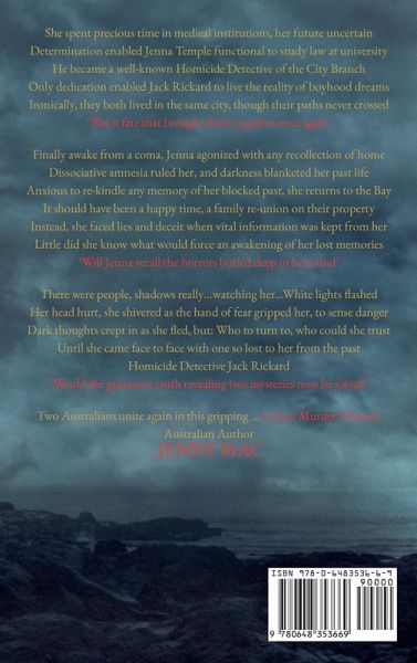 Her Mind SCREAMS MURDER Crime Fiction Thriller: Homicide Murder, Mystery and Psychological Suspense with twists of Romance and deceitby Australian Author: Jenny MacShe spent precious time in medical institutions, her future uncertainDetermination enabled Jenna Temple functional to study law at universityHe became a well-known Homicide Detective of the City BranchOnly dedication enabled Jack Rickard to live the reality of boyhood dreamsIronically, they both lived in the same city, though their paths never crossed'Was it fate that brought them together once again'Finally awake from a coma, Jenna agonized with any recollection of homeDissociative amnesia ruled her, and darkness blanketed her past lifeAnxious to re-kindle any memory of her blocked past, she returns to the BayIt should have been a happy time, a family re-union on their propertyInstead, she faced lies and deceit when vital information was kept from herLittle did she know what would force an awakening of her lost memories'Will Jenna recall the horrors buried deep in her mind' There were people, shadows really...watching her...White lights flashedHer head hurt, she shivered as the hand of fear gripped her, to sense dangerDark thoughts crept in as she fled, but: Who to turn to, who could she trustUntil she came face to face with one so lost to her from the pastHomicide Detective Jack Rickard'Would the gruesome truth revealing two mysteries now be solved'Two Australians unite again in this gripping ... Crime/Murder/Mystery Australian Author JENNY MAC