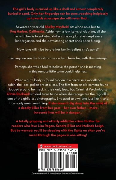 The girl's body is curled up like a shell and almost completely buried in sand. Only her fingertips can be seen, reaching helplessly up towards an escape she will never find... Seventeen-year-old Shelby Mayfield sits alone on a bus to Fog Harbor, California. Aside from a few items of clothing, all she has with her is twenty-two dollars, the ragdoll she's kept since kindergarten, and the devastating secret she's been hiding. How long will it be before her family realizes she's gone? Can anyone see the fresh bruise on her cheek beneath the makeup? Perhaps she was a fool to believe the person she is meeting in this remote little town could help her... When a girl's body is found hidden in a barrel in a woodland cabin, the local police are at a loss. The film from an old camera found looped around her neck is their only lead, but Criminal Psychologist Olivia Rockwell's blood turns to ice when she recognizes the ragdoll in one of the girl's last photographs. She used to own one just like it, and it can only mean one thing: if she doesn't dig deep into the mind of a deadly killer from her past-her own father-more innocent lives will be in danger... A totally gripping and utterly addictive crime thriller for readers who love Lisa Regan, Kendra Elliot and Melinda Leigh. But be warned: you'll be sleeping with the lights on after you've raced through the pages in one sitting! ¿