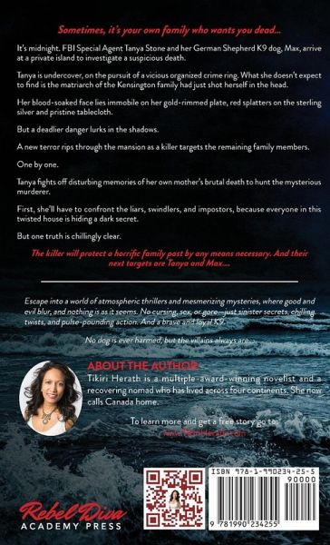 Sometimes, it's your own family who wants you dead... It's midnight. FBI Special Agent Tanya Stone and her German Shepherd K9 dog, Max, arrive at a private island to investigate a suspicious death. Tanya is undercover, on the pursuit of a vicious organized crime ring. What she doesn't expect to find is the matriarch of the Kensington family had just shot herself in the head. Her blood-soaked face lies immobile on her gold-rimmed plate, splatters of red on the sterling silver and pristine tablecloth. But a deadlier danger lurks in the shadows. A new terror rips through the mansion as a killer targets the remaining family members. One by one. Tanya fights off disturbing memories of her own mother's brutal death to hunt the mysterious murderer. First, she'll have to confront the liars, swindlers, and impostors, because everyone in this twisted house is hiding a dark secret. But one truth is chillingly clear. The killer will protect a horrific family past by any means necessary. And their next targets are Tanya and Max.... ---------------------------------------------- ¿¿¿Escape into a world of atmospheric thrillers and mesmerizing mysteries, where good and evil blur, and nothing is as it seems. ¿FBI Special Agent Tanya Stone has a terrifying undercover mission. Hunt the serial killers haunting the idyllic small towns of the West Coast. A bone-chilling darkness seethes underneath the picturesque seaside suburbs. Girls go missing without a trace. Bodies wash up on the shore. Mysterious lights shine at night, and human bones lie buried in shallow graves in the woods. The string of violent abductions and gruesome murders wreak hysteria on the perfect lives of the towns' affluent families. Is this the work of a cursed cult? A deranged secret society? Are serial killers lurking along the coast? What is the purpose behind these cruel killings? With heart-pumping action, shocking twists, and a relentless FBI agent who won't rest until justice is served, this thrilling series will keep you on the edge of your seat until the very end. Get ready for a wild ride through the dark and dangerous world of the west coast's deadliest killers. TANYA STONE FBI K9 MYSTERY THRILLERS ¿ Her Deadly End ¿ Her Cold Blood ¿ Her Last Lie ¿ Her Secret Crime ¿ Her Perfect Murder ¿ Her Grisly Grave No cursing, sex, or gore-just sinister secrets, chilling twists, and pulse-pounding action. And a brave and loyal K9.