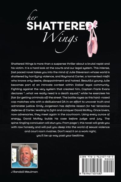 Shattered Wings is more than a suspense thriller about a brutal rapist and his victim. It is a hard look at the courts and our legal system. This intense, fast paced novel takes you into the mind of Julie Stevenson whose world is shattered by horrifying violence, and Raymond Carter, a tormented misfit who knows only desire, disappointment and hatred. Beautiful young Julie becomes part of an intricate contest within Dallas' legal community. Fighting against the very system that created him, Captain Frank Evans declares "...what we really need is a death squad," while he exercises his flair for getting criminals off the street. The battle rages as this hard-nosed cop matches wits with a disillusioned DA in an effort to uncover truth and administer justice. Emily Jorgenson has definite reason for her tenacious defense of Carter, leading to fight and conquer David McRay. Once lovers, now adversaries, they meet again in the courtroom. Using every ounce of energy, David McRay builds his case before judge and jury. The spine-tingling conclusion will stun you. From page 1, this novel will grab you with raw honesty and will pull you deep into the world of sexual violence and court room rivalries. Don't read it on a work night;you'll be up way past your bedtime.
