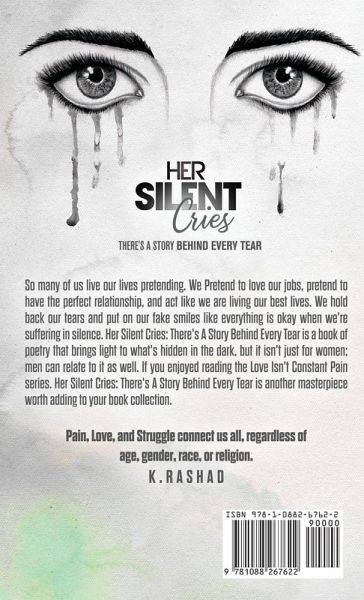 So many of us live our lives pretending. We Pretend to love our jobs, pretend to have the perfect relationship, and act like we are living our best lives. We hold back our tears and put on our fake smiles like everything is okay when we're suffering in silence. Her Silent Cries: There's A Story Behind Every Tear is a book of poetry that brings light to what's hidden in the dark, but it isn't just for women; men can relate to it as well. If you enjoyed reading the Love Isn't Constant Pain series. Her Silent Cries: There's A Story Behind Every Tear is another masterpiece worth adding to your book collection. Pain, Love, and Struggle connect us all, regardless of age, gender, race, or religion. K.Rashad