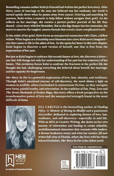 Bestselling romance author Kelsi Jo Kincaid had written the perfect love story. After thirty years of marriage to the man she believed was her soulmate, her world is turned upside down when he passes away from cancer. Grieving and searching for answers, Kelsi writes a memoir to help fellow widows navigate their grief. As she reflects on her marriage, she curates a picture-perfect portrait of the life they shared-a love story with few blemishes. But as she digs deeper into her memories, she starts to uncover the tangled, unseen threads that reveal a more complicated truth. In the midst of her grief, Kelsi forms an unexpected connection with Claire, a fellow widow. What begins as a friendship soon blossoms into a love Kelsi never imagined-one that comes to life in the ashes of loss. As she opens her heart to this new chapter, Kelsi begins to discover a new version of herself, one that is free from the expectations of her past. But just as Kelsi begins to embrace this second chance at love, she discovers a letter-one that will change not only her understanding of her past but the trajectory of her future. This revelation forces Kelsi to confront the fractures in the perfect life she thought she had, challenging everything she believed about herself, her marriage, and her capacity for forgiveness. Her Story So Far is a powerful exploration of love, loss, identity, and resilience. Through Kelsi's emotional journey of self-discovery, the novel shines a light on women in midlife, often overlooked in mainstream fiction, as they navigate new loves, painful truths, and reinvention. In the tradition of Eat, Pray, Love and The Seven Husbands of Evelyn Hugo, this story offers a fresh perspective on the transformative power of love and the unexpected strength found in the most difficult of times.