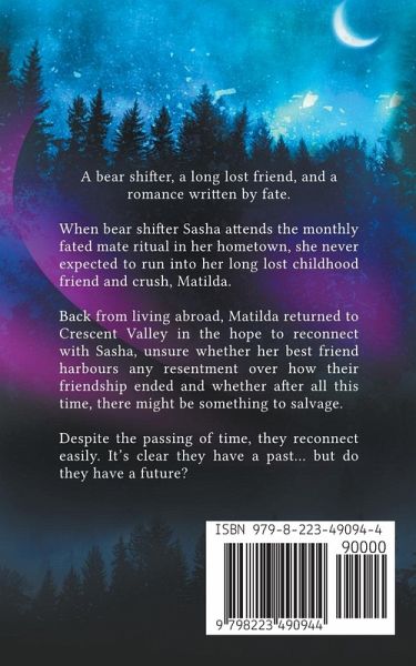A bear shifter, a long lost friend, and a romance written by fate. When bear shifter Sasha attends the monthly fated mate ritual in her hometown, she never expected to run into her long lost childhood friend and crush, Matilda. Back from living abroad, Matilda returned to Crescent Valley in the hope to reconnect with Sasha, unsure whether her best friend harbours any resentment over how their friendship ended and whether after all this time, there might be something to salvage. Despite the passing of time, they reconnect easily. It's clear they have a past… but do they have a future? **** Her Unforgotten Bear Mate is a fated mates paranormal romance featuring a bear shifter and her mate. It includes a standalone f/f between long lost friends and a dash of steamy goodness. It is part of the Crescent Lake Bears series.