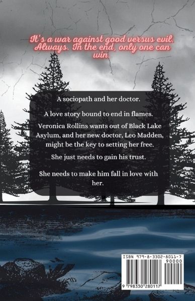 A sociopath and her doctor. A love story bound to end in flames. Veronica Rollins wants out of Black Lake Asylum, and her doctor, Leo Madden, might be the key to setting her free. She just needs to gain his trust. She needs to make him fall in love with her.