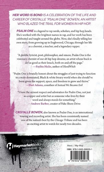 "Nowhere near famous but still infamous," Psalm One is a legend to rap nerds, scholars, and "heads," and has gone on to work with the brightest names in rap and have her work celebrated and taught around the globe. In Her Word Is Bond, Psalm One tells her own story, from growing up in Englewood, Chicago through her life as a chemist, teacher, and legendary rapper. Intrinsically feminist, this story is a celebration of the life and career of one artist who blazed the trail for women in hip hop.