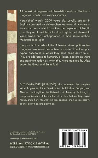 All the extant fragments of Herakleitos and a collection of Diogenes' words from various sources. Herakleitos' words, 2500 years old, usually appear in English translated by philosophers as makeshift clusters of nouns and verbs which can then be inspected at length. Here they are translated into plain English and allowed to stand naked and unchaperoned in their native archaic Mediterranean light. The practical words of the Athenian street philosopher Diogenes have never before been extracted from the apocryphal anecdotes in which they have come down to us. They are addressed to humanity at large, and are as sharp and pertinent today as when they were admired by Alexander the Great and Saint Paul.