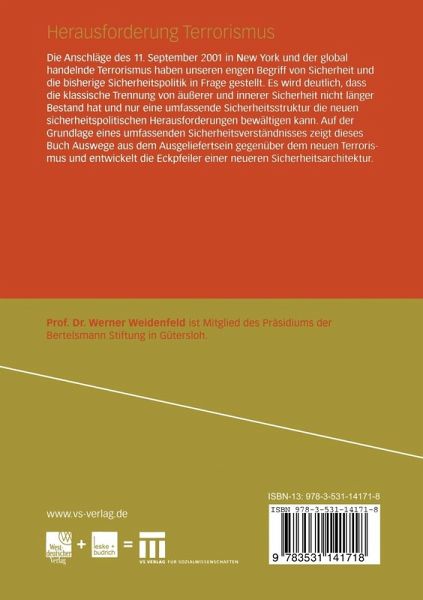 Die Anschläge des 11. September 2001 in New York und der global handelnde Terrorismus haben unseren engen Begriff von Sicherheit und die bisherigeSicherheitspolitik in Frage gestellt. Es wird deutlich, dass die klassische Trennung von äußerer und innerer Sicherheit nicht länger Bestand hat und nur eine umfassende Sicherheitsstruktur die neuen sicherheitspolitischen Herausforderungen bewältigen kann. Auf der Grundlage eines umfassenden Sicherheitsverständnisses zeigt dieses Buch Auswege aus dem Ausgeliefertsein gegenüber dem neuen Terrorismus und entwickelt die Eckpfeiler einer neueren Sicherheitsarchitektur.