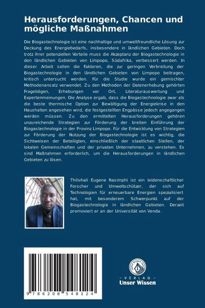 Die Biogastechnologie ist eine nachhaltige und umweltfreundliche Lösung zur Deckung des Energiebedarfs, insbesondere in ländlichen Gebieten. Doch trotz ihrer potenziellen Vorteile muss die Akzeptanz der Biogastechnologie in den ländlichen Gebieten von Limpopo, Südafrika, verbessert werden. In dieser Arbeit sollen die Faktoren, die zur geringen Verbreitung der Biogastechnologie in den ländlichen Gebieten von Limpopo beitragen, kritisch untersucht werden. Für die Studie wurde ein gemischter Methodenansatz verwendet. Zu den Methoden der Datenerhebung gehörten Fragebögen, Erhebungen vor Ort, Literaturauswertung und Expertenmeinungen. Die Analyse ergab, dass die Biogastechnologie zwar als die beste thermische Option zur Bewältigung der Energiekrise in den Haushalten angesehen wird, die festgestellten Engpässe jedoch angegangen werden müssen. Zu den ermittelten Herausforderungen gehören unzureichende Strategien zur Förderung der breiten Einführung der Biogastechnologie in der Provinz Limpopo. Für die Entwicklung von Strategien zur Förderung der Nutzung der Biogastechnologie ist es wichtig, die Sichtweisen der Beteiligten, einschließlich der staatlichen Stellen, der lokalen Gemeinschaften und der privaten Unternehmen, zu verstehen. Es sind Maßnahmen erforderlich, um die Herausforderungen in ländlichen Gebieten zu lösen.
