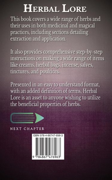 This book covers a wide range of herbs and their uses in both medicinal and magical practices, including sections detailing extraction and application. It also provides comprehensive step-by-step instructions on making a wide range of items like creams, herbal bags, incense, salves, tinctures, and poultices. Presented in an easy to understand format, with an added definition of terms, Herbal Lore is an asset to anyone wishing to utilize the beneficial properties of herbs.