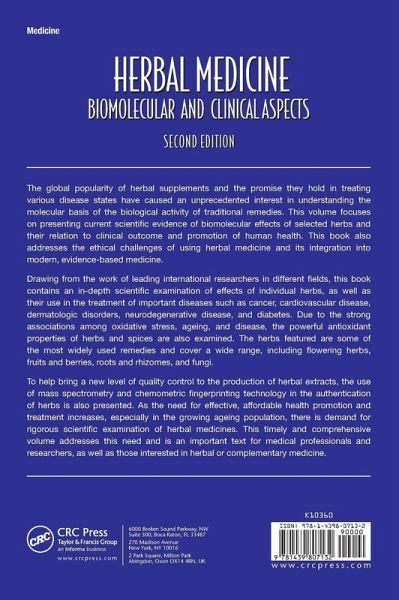 The global popularity of herbal supplements and the promise they hold in treating various disease states has caused an unprecedented interest in understanding the molecular basis of the biological activity of traditional remedies. Herbal Medicine: Biomolecular and Clinical Aspects focuses on presenting current scientific evidence of biomolecular effects of selected herbs and their relation to clinical outcome and promotion of human health. It includes experimental approaches for looking at the bioactive components in herbs. This book also addresses the ethical challenges of using herbal medicine and its integration into modern, evidence-based medicine. Drawing from the work of leading international researchers in different fields, this volume contains an in-depth scientific examination of effects of individual herbs, as well as their use in the treatment of important diseases such as cancer, cardiovascular disease, dermatologic disorders, neurodegenerative disease, and diabetes. Due to the strong associations between oxidative stress, ageing, and disease, the powerful antioxidant properties of herbs and spices are also examined. The herbs featured are some of the most widely used remedies and cover a wide range, including flowering herbs, fruits and berries, roots and rhizomes, and fungi. The fact that composition of natural products can vary greatly and contamination and misidentification can occur are important issues in the use of herbal medicines. To help bring a new level of quality control to the production of herbal extracts, the use of mass spectrometry and chemometric fingerprinting technology is presented as a means for improved identification and authentication of herbs. As the need for effective, affordable health promotion and treatment increases, especially in the growing ageing population, there is a need for rigorous scientific examination of herbal medicines. This timely and comprehensive volume addresses this need and is an important text for medical professionals and researchers, as well as those interested in herbal or complementary medicine.