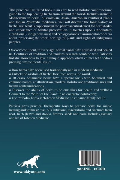 This practical illustrated book is an easy to read holistic comprehensive guide to the top healing herbs from around the world. Includes aromatic Mediterranean herbs, Australasian, Asian, Amazonian rainforest plants and Indian Ayurvedic medicines. You will discover the long history of herbal use, what is happening in the pharmaceutical quest for herbs today and importance of habitat preservation. It touches upon ethnobotany (traditional/indigenous uses) and ecological and environmental concerns about preserving the world heritage of plants and rights of indigenous peoples. On every continent, in every Age, herbal plants have nourished and healed us. Centuries of tradition and modern research combine with Patricia's holistic awareness to give a unique approach which chimes with today's pressing environmental issues. oHow herbs have been used traditionally and in modern medicine. oUnlock the wisdom of herbal lore from across the world. o50 easily obtainable herbs have a special focus with botanical and common names, an illustration, modern, holistic and traditional uses and health contraindications. oDiscover the ability of herbs to be our allies for health and wellness. Connect to the 'Spirit of the Plant' in an energetic holistic way. oUse everyday herbs as 'Kitchen Medicine' to enhance family health. Patricia gives practical therapeutic ways to prepare herbs for simple healing and wellness; teas, oils, infusions, macerations and tinctures from root, herb (leaves and stalks), flowers, seeds and bark. Includes glossary and list of Kitchen Medicine.