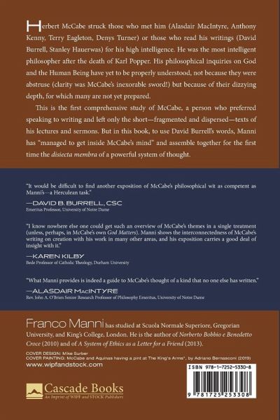 Herbert McCabe struck those who met him (Alasdair MacIntyre, Anthony Kenny, Terry Eagleton, Denys Turner) or those who read his writings (David Burrell, Stanley Hauerwas) for his high intelligence. He was the most intelligent philosopher after the death of Karl Popper. His philosophical inquiries on God and the Human Being have yet to be properly understood, not because they were abstruse (clarity was McCabe's inexorable sword!) but because of their dizzying depth, for which many are not yet prepared. This is the first comprehensive study of McCabe, a person who preferred speaking to writing and left only the short--fragmented and dispersed--texts of his lectures and sermons. But in this book, to use David Burrell's words, Manni has ""managed to get inside McCabe's mind"" and assemble together for the first time the disiecta membra of a powerful system of thought.