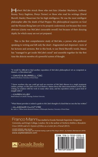 Herbert McCabe struck those who met him (Alasdair MacIntyre, Anthony Kenny, Terry Eagleton, Denys Turner) or those who read his writings (David Burrell, Stanley Hauerwas) for his high intelligence. He was the most intelligent philosopher after the death of Karl Popper. His philosophical inquiries on God and the Human Being have yet to be properly understood, not because they were abstruse (clarity was McCabe's inexorable sword!) but because of their dizzying depth, for which many are not yet prepared. This is the first comprehensive study of McCabe, a person who preferred speaking to writing and left only the short--fragmented and dispersed--texts of his lectures and sermons. But in this book, to use David Burrell's words, Manni has ""managed to get inside McCabe's mind"" and assemble together for the first time the disiecta membra of a powerful system of thought.