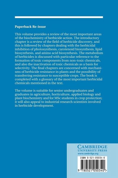 This volume provides a review of the most important areas of the biochemistry of herbicide action.
