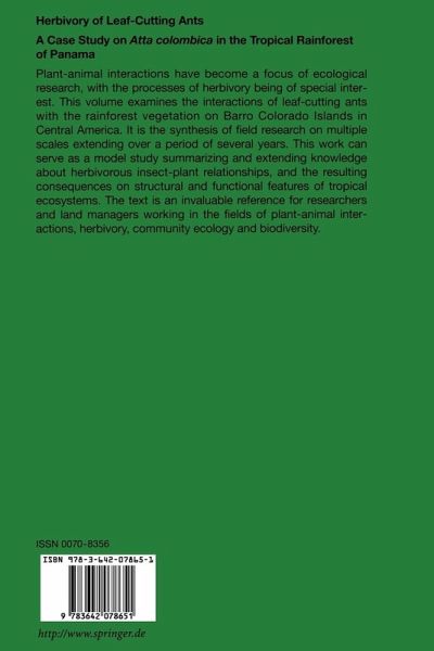 Plant-animal interactions have become a focus of ecological research, with the processes of herbivory being of special interest. This volume examines the interactions of leaf-cutting ants with the rainforest vegetation on Barro Colorado Islands in Central America. It is the synthesis of field research on multiple scales extending over a period of several years. This work can serve as a model study summarizing and extending knowledge about herbivorous insect-plant relationships, and the resulting consequences on structural and functional features of tropical ecosystems. The text is an invaluable reference for researchers and land managers working in the fields of plant-animal interactions, herbivory, community ecology and biodiversity.