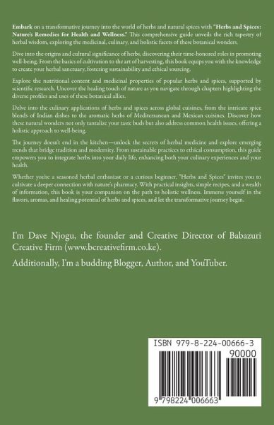 Embark on a transformative journey into the world of herbs and natural spices with "Herbs and Spices: Nature's Remedies for Health and Wellness." This comprehensive guide unveils the rich tapestry of herbal wisdom, exploring the medicinal, culinary, and holistic facets of these botanical wonders. Dive into the origins and cultural significance of herbs, discovering their time-honored roles in promoting well-being. From the basics of cultivation to the art of harvesting, this book equips you with the knowledge to create your herbal sanctuary, fostering sustainability and ethical sourcing. Explore the nutritional content and medicinal properties of popular herbs and spices, supported by scientific research. Uncover the healing touch of nature as you navigate through chapters highlighting the diverse profiles and uses of these botanical allies. Delve into the culinary applications of herbs and spices across global cuisines, from the intricate spice blends of Indian dishes to the aromatic herbs of Mediterranean and Mexican cuisines. Discover how these natural wonders not only tantalize your taste buds but also address common health issues, offering a holistic approach to well-being. The journey doesn't end in the kitchen-unlock the secrets of herbal medicine and explore emerging trends that bridge tradition and modernity. From sustainable practices to ethical consumption, this guide empowers you to integrate herbs into your daily life, enhancing both your culinary experiences and your health. Whether you're a seasoned herbal enthusiast or a curious beginner, "Herbs and Spices" invites you to cultivate a deeper connection with nature's pharmacy. With practical insights, simple recipes, and a wealth of information, this book is your companion on the path to holistic wellness. Immerse yourself in the flavors, aromas, and healing potential of herbs and spices, and let the transformative journey begin.