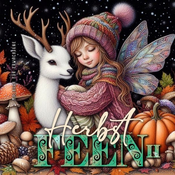 Herbst Feen Malbuch für Erwachsene 2 Ein wunderbares Malbuch mit wunderschönen Feen im Herbst mit Kürbissen, Herbstlaub, Beeren, Pilzen, Tieren wie Wölfen, Bären, Hirschen in Herbststimmung, schönen Umrahmungen und Herbst Kompositionen. Das Malbuch enthält: 52 S. 22x22c, weiße Rückseiten (kein Durchdrücken, ideal zum Einrahmen) Feen mit Herbstlaub, Feen mit Bären, Wölfen, Hirschen, Eichhörnchen. Herbstkürbisse und Pilze, und viele mehr.Ein perfektes Geschenk für alle Naturgeister- und Feen-Fans.