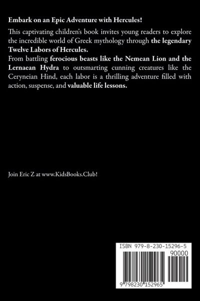 Embark on an Epic Adventure with Hercules! This captivating children's book invites young readers to explore the incredible world of Greek mythology through the legendary Twelve Labors of Hercules. From battling ferocious beasts like the Nemean Lion and the Lernaean Hydra to outsmarting cunning creatures like the Ceryneian Hind, each labor is a thrilling adventure filled with action, suspense, and valuable life lessons. Journey Alongside Hercules as He:Overcomes seemingly impossible challenges using his incredible strength, sharp wit, and unwavering determination. Faces terrifying creatures like the Erymanthian Boar, the Stymphalian Birds, and Cerberus, guardian of the Underworld. Travels to the edges of the known world, encountering fascinating characters and overcoming dangerous obstacles. Learns valuable lessons about courage, wisdom, and the importance of using his strength for good. Perfect for bedtime stories, classroom reading, or anytime adventure, this book is a must-have for any young mythology enthusiast! Order your copy today and join Hercules on his epic journey!