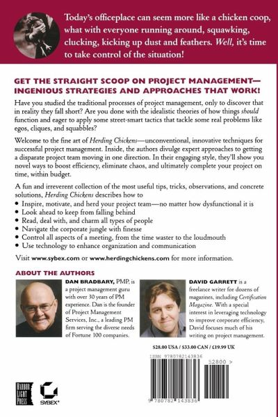 Welcome to the fine art of Herding Chickens--unconventional, innovative techniques for successful project management. Inside, the authors divulge expert approaches to getting a disparate project team moving in one direction. In their engaging style, they'll show you novel ways to boost efficiency, eliminate chaos, and ultimately complete your project on time, within budget.