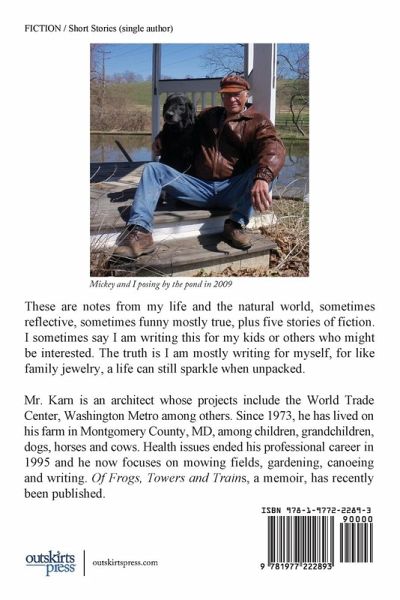 These are notes from my life and the natural world, sometimes reflective, sometimes funny mostly true, plus five stories of fiction. I sometimes say I am writing this for my kids or others who might be interested. The truth is I am mostly writing for myself, for like family jewelry, a life can still sparkle when unpacked.