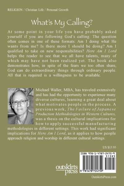 What's My Calling? At some point in your life you have probably asked yourself if you are following God's calling. The question often comes in one of these formats: Am I doing what He wants from me? Is there more I should be doing? Am I qualified to take on new responsibilities? Here Am I Lord helps the reader to see that we all have talents, many of which may have not been realized yet. The book also demonstrates how, in spite of the fears we too often share, God can do extraordinary things through ordinary people. All that is required is a willingness to be available.