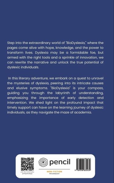 Step into the extraordinary world of ""BioDyslexia,"" where the pages come alive with hope, knowledge, and the power to transform lives. Dyslexia may be a formidable foe, but armed with the right tools and a sprinkle of innovation, we can rewrite the narrative and unlock the true potential of dyslexic individuals. In this literary adventure, we embark on a quest to unravel the mysteries of dyslexia, peering into its intricate causes and elusive symptoms. ""BioDyslexia"" is your compass, guiding you through the labyrinth of understanding, emphasizing the importance of early detection and intervention. We shed light on the profound impact that timely support can have on the learning journey of dyslexic individuals, as they navigate the maze of academia.