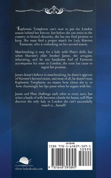 Euphemia Templeton can't wait to put the London season behind her forever, but before she can retire to the country in blessed obscurity, she has one final promise to keep. She must find a proper match for Lady Harriett Fairmont, who is embarking on her second season. Matchmaking is easy for a lady with Phee's skills, but when Harriett's elder brother James, the arrogant, infuriating, and far too handsome Earl of Fairmont accompanies his sister to London, she soon has cause to regret her promise. James doesn't believe in matchmaking, he doesn't approve of Harriett's favored swain, and most of all, he doesn't trust Euphemia Templeton, no matter how clever she is, or how charmingly her lips purse when he argues with her. James and Phee challenge each other at every turn, but when a battle of wills becomes a battle for hearts, will Phee discover the only lady in London she can't successfully match is...herself?