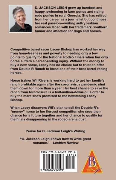 Competitive barrel racer Lacey Bishop has worked her way from homelessness and poverty to needing only a few points to qualify for the National Rodeo Finals when her only horse suffers a career-ending injury. Without the money to buy a new horse, Lacey has no choice but to trust an offer from Two Rivers Ranch to lease one of their best barrel-racing horses. Horse trainer Wil Rivers is working hard to get her family's ranch profitable again after the coronavirus pandemic shut them down for more than a year. Her best chance to save the ranch from foreclosure is a million-dollar-plus offer to buy the one barrel horse that could defeat the mare she's leased to the bewitching Lacey Bishop. When Lacey discovers Wil's plan to sell the Two Rivers "money" horse to her fiercest competitor, she sees their chance for a future together and her chance to qualify for the finals disappearing in the rodeo arena dust.