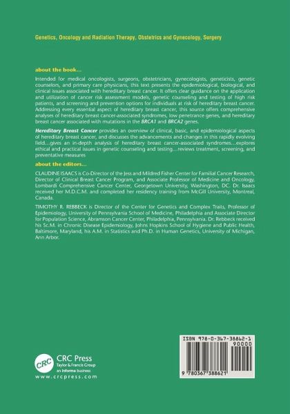 This text presents the epidemiological, biological, and clinical issues associated with hereditary breast cancer, offering clear guidance on the application and utilization of cancer risk assessment models, genetic counseling and testing of high risk patients, and screening and prevention options for individuals at risk.
