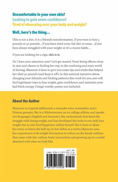 Uncomfortable in your own skin? Looking to gain some confidence? Tired of obsessing over your body and weight? Well, here's the thing... This is not a diet. It is a lifestyle transformation. If you want to lose 5 pounds or 50 pounds...if you have tried every fad diet or none...if you have always struggled with your weight or it's a recent battle... If you are looking for a sign, this is it. Do I have your attention now? Let's get started. From being elbows deep in mac and cheese to finding her way in the confusing and toxic world of dieting, Shannon is here to give you some tips and tricks that helped her shed 50 pounds (and keep it off). In this satirical narrative about changing your lifestyle and finding patterns that work for you, you will find legitimate ways to lose weight, gain confidence, and maintain your bad-bitch energy. Cringe-worthy quotes not included.