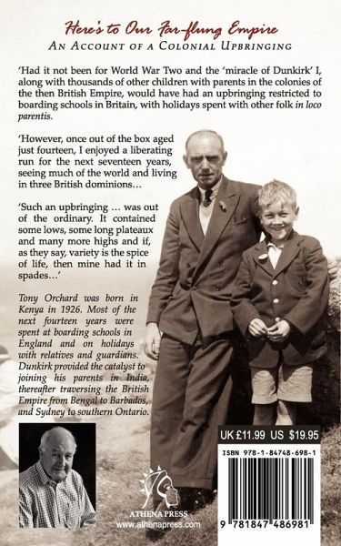 'Had it not been for World War Two and the 'miracle of Dunkirk' I, along with thousands of other children with parents in the colonies of the then British Empire, would have had an upbringing restricted to boarding schools in Britain, with holidays spent with other folk in loco parentis. 'However, once out of the box aged just fourteen, I enjoyed a liberating run for the next seventeen years, seeing much of the world and living in three British dominions... 'Such an upbringing ... was out of the ordinary. It contained some lows, some long plateaux and many more highs and if, as they say, variety is the spice of life, then mine had it in spades...' Tony Orchard was born in Kenya in 1926. Most of the next fourteen years were spent at boarding schools in England and on holidays with relatives and guardians. Dunkirk provided the catalyst to joining his parents in India, thereafter traversing the British Empire from Bengal to Barbados, and Sydney to southern Ontario.