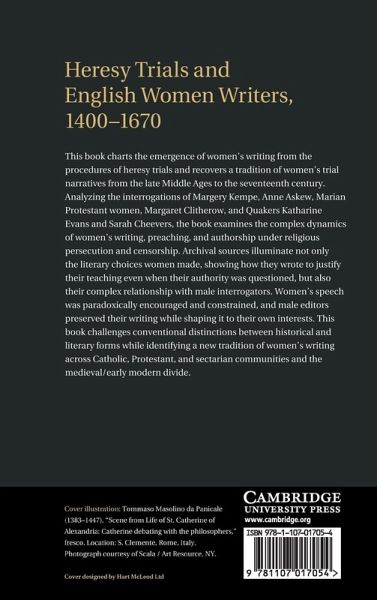 This book charts the emergence of women's writing from the procedures of heresy trials and recovers a tradition of women's trial narratives from the late Middle Ages to the seventeenth century. Analyzing the interrogations of Margery Kempe, Anne Askew, Marian Protestant women, Margaret Clitherow and Quakers Katherine Evans and Sarah Cheevers, the book examines the complex dynamics of women's writing, preaching and authorship under religious persecution and censorship. Archival sources illuminate not only the literary choices women made, showing how they wrote to justify their teaching even when their authority was questioned, but also their complex relationship with male interrogators. Women's speech was paradoxically encouraged and constrained, and male editors preserved their writing while shaping it to their own interests. This book challenges conventional distinctions between historical and literary forms while identifying a new tradition of women's writing across Catholic, Protestant and Sectarian communities and the medieval/early modern divide.