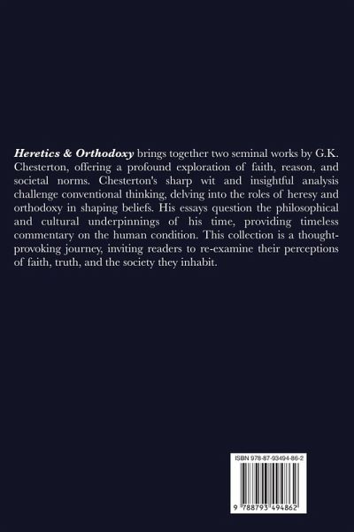 Heretics & Orthodoxy brings together two seminal works by G.K. Chesterton, offering a profound exploration of faith, reason, and societal norms. Chesterton's sharp wit and insightful analysis challenge conventional thinking, delving into the roles of heresy and orthodoxy in shaping beliefs. His essays question the philosophical and cultural underpinnings of his time, providing timeless commentary on the human condition. This collection is a thought-provoking journey, inviting readers to re-examine their perceptions of faith, truth, and the society they inhabit.
