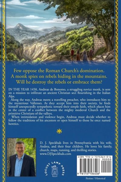 IN THE YEAR 1458, Andreas de Bonomo, a struggling novice monk, is sent on a mission to infiltrate an ancient Christian sect flourishing in the Italian Alps. Along the way, Andreas meets a travelling preacher, who introduces him to the mysterious Vallenses. As they accept him into their society, he finds himself unexpectedly sympathetic toward their simple faith, which places him in the center of a conflict between the mighty medieval Church and the primitive Christians of the valleys. When intimidation and violence begin, Andreas must decide whether to follow the traditions of his ancestors or open himself to those he once named heretics.