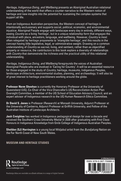 Heritage, Indigenous Doing and Wellbeing presents an Aboriginal Australian relational understanding of the world that offers a counter-narrative to the Western notion of heritage and new insights into the potential for sustaining the complex systems that support all life.