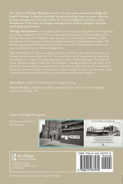 The contributors, all responsible for developing best practices, come from a range of heritage organizations including English Heritage, The National Trust, Historic Scotland, CADW and National Parks. They draw on examples from throughout the UK, from public art and twentieth-century military remains, to cathedrals and urban heritage, and discuss the range of interpretive options available and how they can be appropriately tailored to specific places and audiences.