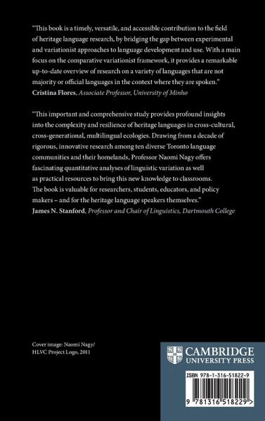 "Reporting a large-scale project, this is the first book to investigate heritage language variation and change across 3 generations, in 8 under-documented languages spoken in Toronto, with homeland comparisons. It introduces new methods for multilingual data collection, curation, quantitative analysis and interpretation of spontaneous speech"--
